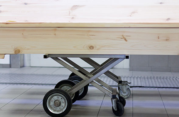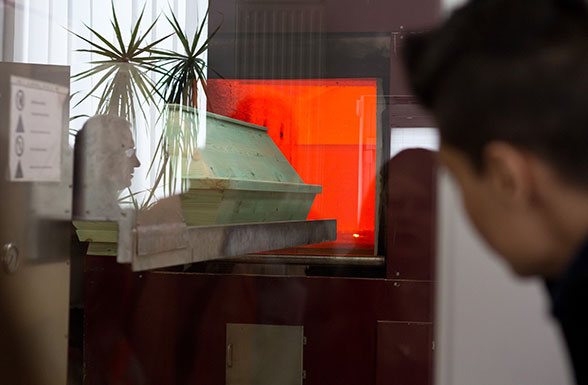 - Der Sarg wird in den Ofen gefahren, wo er sich durch die hohe Temperatur selbst entzündet.