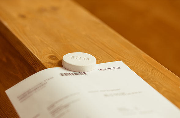 - Die Aschekapsel wird verschlossen, versiegelt und Ihrem Bestatter übergeben.